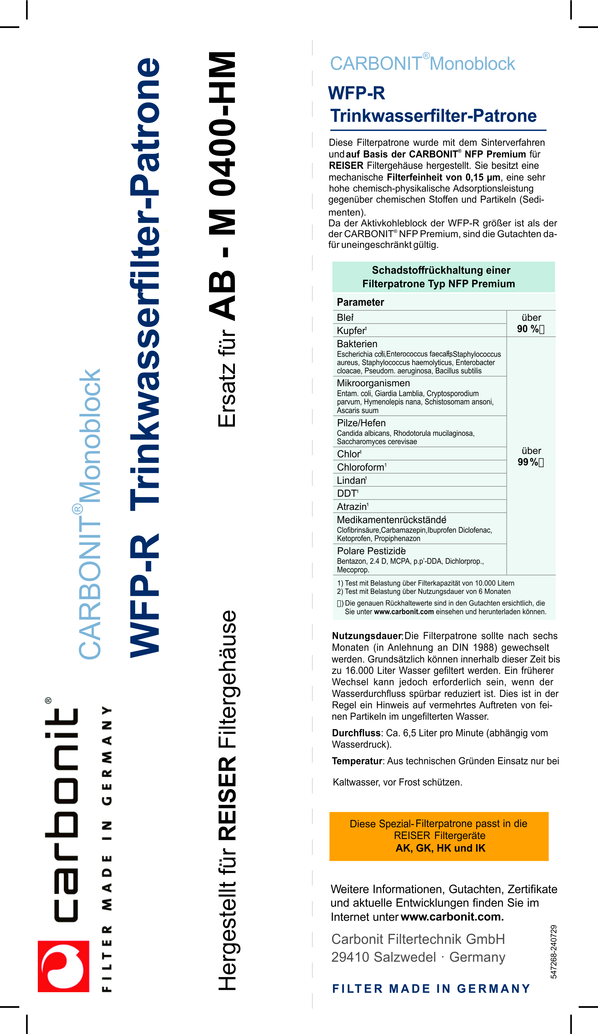 Datenblätter & Infos "0,15µ Kohlefilter, Hohlmembran Technologie (HM), für Reiser Untertisch Filtergehäuse"