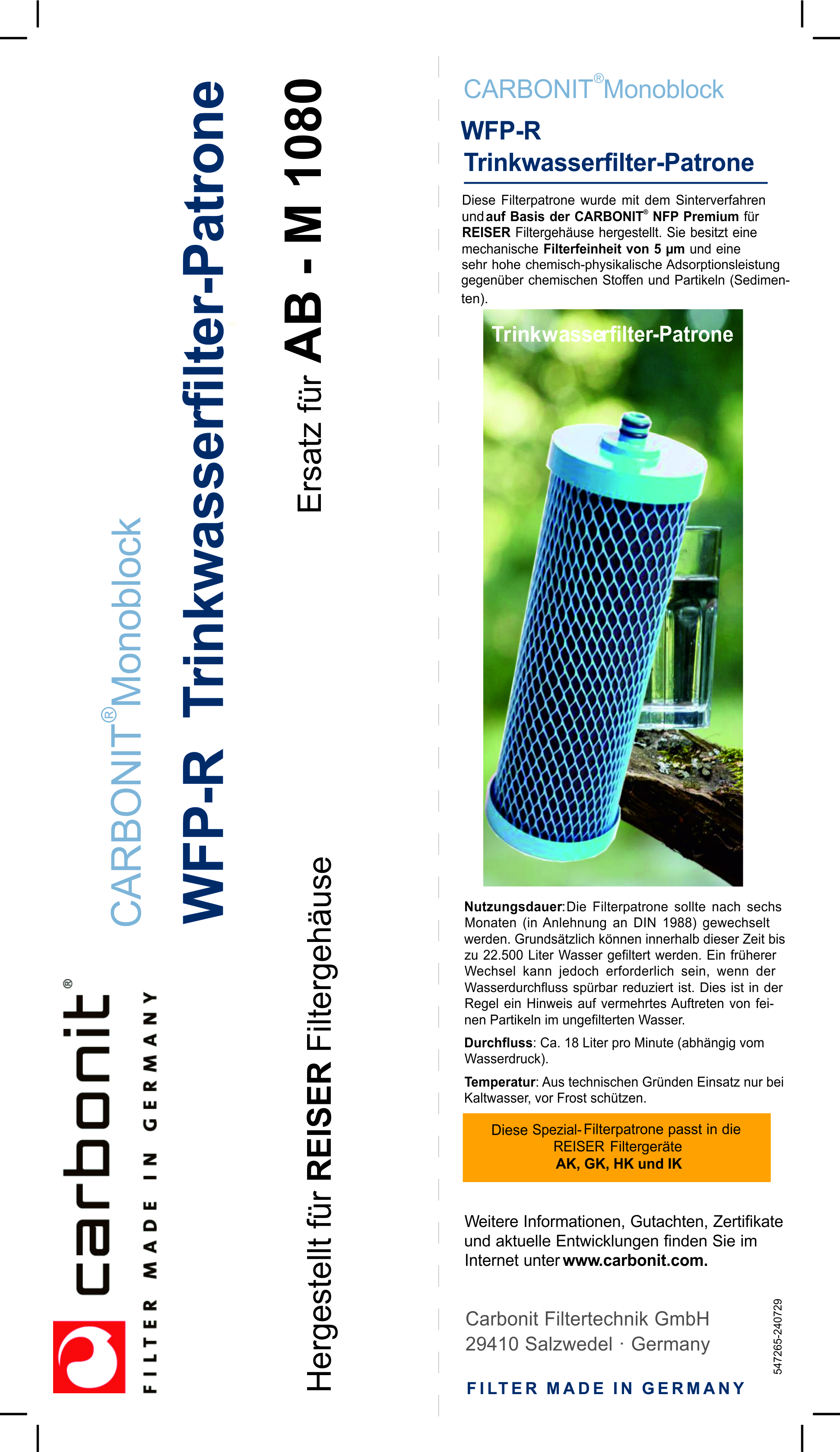 Datenblätter & Infos "5µ Kohlefilter, für Reiser Untertisch Filtergehäuse, 10 Zoll"